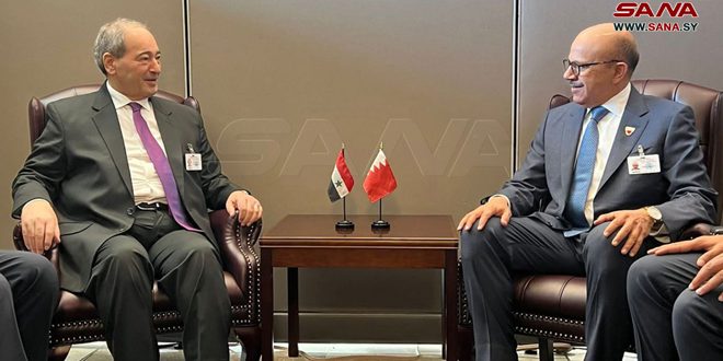 New York, (ST) – The Minister of Foreign Affairs and Expatriates, Dr. Faisal Al-Miqdad, discussed on Wednesday with his Bahraini Counterpart Dr. Abdullatif bin Rashid Al-Zayani, the latest developments in the region and means of enhancing bilateral relations between the two countries in various fields.