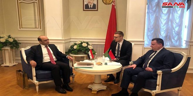 MINSK, (ST)_ Syrian Ambassador to Belarus, Mohammad al-Omrani, discussed with Minister of Defense Industries and Head of the Belarusian side in the Joint Syrian-Belarusian Intergovernmental Committee for Trade, Economic and Technical Cooperation Dmitry Bantus cooperation relations between the two countries.