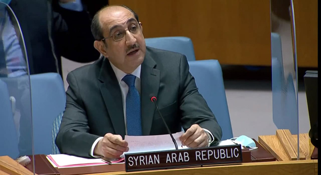 The senior Syrian diplomat criticized the silence of the Security Council over the repeated Israeli attacks on Syrian territories as well as the aggressive practices of the American and Turkish occupation forces towards the Syrians in cooperation with their affiliated terrorist groups and separatist militias.