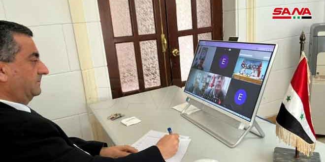 Member of the Central Leadership of the Baath Party Dr. Mahdi Dakhlalla and Member of the General Secretariat of the Cuban Communist Party, Member of the Party’s Central Committee Jorge Luis Brucchi Lorenzo during a virtual session discussed ways to confront the challenges facing the two countries.