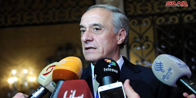 Answering journalists’ questions during a farewell ceremony held by the Ministry of Foreign Affairs and Expatriates in honor of the Russian Ambassador to Syria Alexander Kinshchak on the occasion of the end of his term in the country, Soussan said “the liberation of the entire Syrian territory from terrorism is a declared goal which the Syrian state is determined to achieve either through reconciliation process or through military action in case some parties insist on adopting the terrorist scheme”.