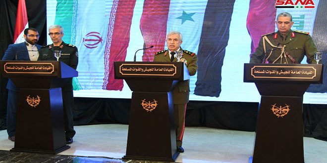 In a press conference he held jointly with Chief of General Staff of the Iranian Armed Forces, Major General Mohammad Baqeri and the Chief of Staff of Iraqi Army, Lieutenant General Othman al-Ghanmi, General Ayyoub said he held very important and successful meetings with the Chiefs of the Army Staff of Iran and Iraq, pointing out that “the results of these meetings will help the three countries confront the challenges and dangers that emerged because of the spread of takfiri terrorism in this vital area of the world.