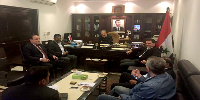 New Delhi, (ST) – Minister of Public Works and Housing Eng. Hussein Arnous discussed here with Nama Nagiswar Rao, Director of the Indian Company “Madokon”, ways and areas of cooperation between Syria and India in the reconstruction phase. The Indian Company is specialized in infrastructure, housing, energy projects and resource exploration.