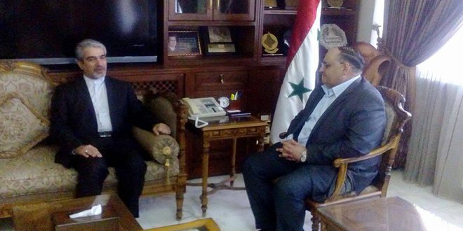 Damascus (ST) – The Minister of Agriculture and Agrarian Reform Ahmed Al-Qadri discussed with Iran’s ambassador to Damascus Javad Turkabadi the prospects for joint cooperation between the two countries in the agricultural areas.