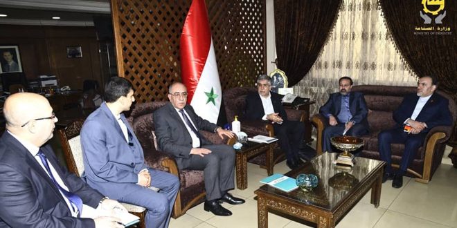 Damascus, (ST) – The Minister of Industry Ziad Sobhi Sabbagh discussed with the head of the Iranian University Jihad Foundation, Dr. Hamid Reza Tibi and his accompanying delegation, means of enhanceing and developing cooperation between the two countries in the field of developing industrial technologies and production lines.