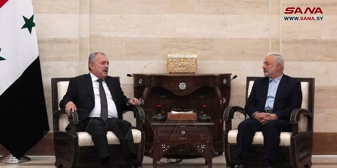 Damascus, (ST) – Prime Minister Hussein Arnous met with Chairman of Iran’s Majlis (parliament) National Security and Foreign Policy Commission Vahid Jalalzadeh and the accompanying delegation.