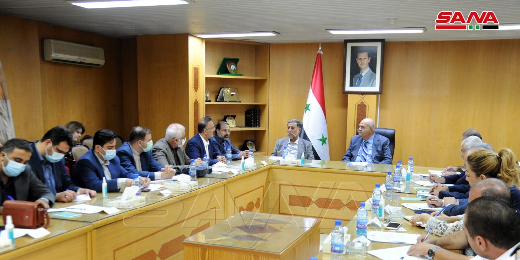 DAMASCUS, (ST)_The ways of enhancing economic cooperation relations and trade exchange between Syria and Iran were reviewed on Monday by the Minister of Internal Trade and Consumer Protection Amro Salem and the Advisor of Iranian Defense Minister and Chairman of economic cooperation with the axis of resistance Mustafa Ithbati and the accompanying delegation.