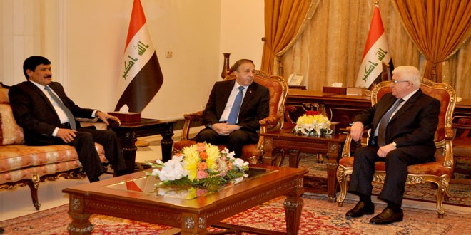 During his meeting with Speaker of the People’s Assembly Mohammad Jihad al-Laham on the sideline of the conference of the Parliamentary Union of the Organization of Islamic Cooperation Member States (PUIC) held in Baghdad, President Masum said “our hearts are with Syria and it necessary to have full cooperation between the two countries as to eliminate terrorism and the criminals and gangs of al-Qaeda and Daesh.” He expressed confidence that Syria and Iraq will achieve victory over the terrorists who adopt killing, destruction and takfirism as an ideology.