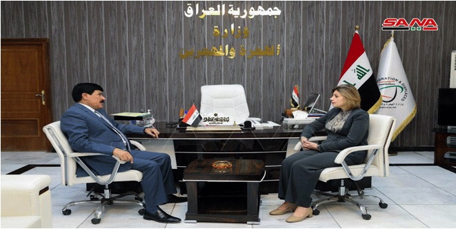 Baghdad, (ST) – Iraqi Minister of Migration and Displaced, Mrs. Ivan Faiek Jabru discussed with Syrian Ambassador in Baghdad Satam Jadaan al-Dandah on Monday means to enhance bilateral relations between Syria and Iraq.
