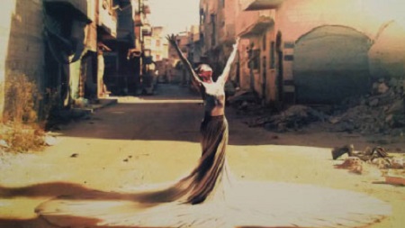 “The ballet dancer represents Syria that shook of the dust of destruction and stood up to live,” he said, indicating that he used the colours of the Syrian flag in the photographs exhibited in Abo Remmaneh cultural center.