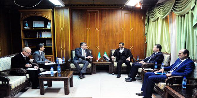 Chairman of the Planning and International Cooperation Commission Musab Badawi today discussed with the Chargé d’Affaires of the Italian Embassy in Syria Stefano Ravagnan means to enhance cooperation between the two countries in the economic and development fields.