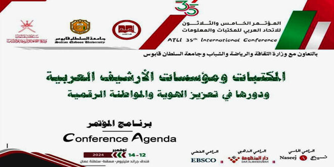 The conference is organized by the Arab Federation for Libraries and Information in cooperation with the Omani Ministry of Culture, Youth and Sports and Sultan Qaboos University, at the Grand Millennium Muscat Hotel for three days, with the participation of Syria by the Director General of the Assad National Library in Damascus, Fadi Ghanem, and a number of Syrian researchers.