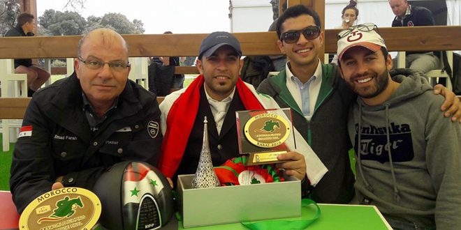 The Syrian equestrian Humam al-Shehab ranked first and won the consolation prize, which is conducted to those who didn’t qualified for the finals after he passed the competition’s track (12 barriers 125 cm-high, 60.17sec, 0 mis).