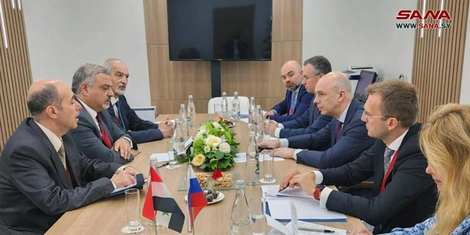 MOSCOW, JUN.8, (ST)- Minister of Finance, Dr. Kenan Yaghi, held a meeting with his Russian counterpart, Anton Siluanov, in Saint Petersburg, on the sidelines of the Saint Petersburg International Economic Forum.
