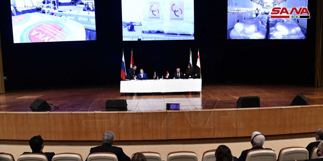 The signing ceremony was held after the opening session of the joint meeting of the Syrian- Russian coordination ministerial commissions on the return of Syrian Refugees at the Conferences Palace in Damascus, according to the Syrian Arab News Agency (SANA).