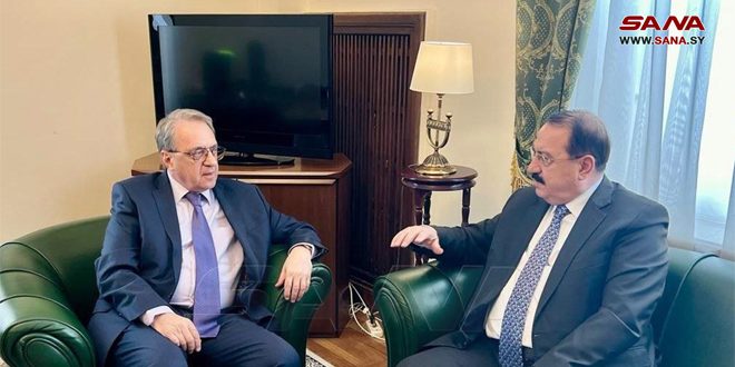 Moscow, (ST) – The Special Representative of the Russian President to the Middle East and African Countries, Deputy Foreign Minister Mikhail Bogdanov, discussed with Syria’s Ambassador to Moscow, Dr. Riad Haddad, the latest developments in Syria and the region.