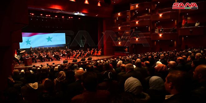 The Syrian National Band for Arabic Music, led by Maestro Adnan Fathallah, as well as renowned Syrian singers from different Syrian provinces and students of music institutes took part in this evening to convey a message stressing that Qudoud Halabiya is a great legacy for the coming generations and that it enjoys complete support by the government and civil society organizations with the aim of preserving it.