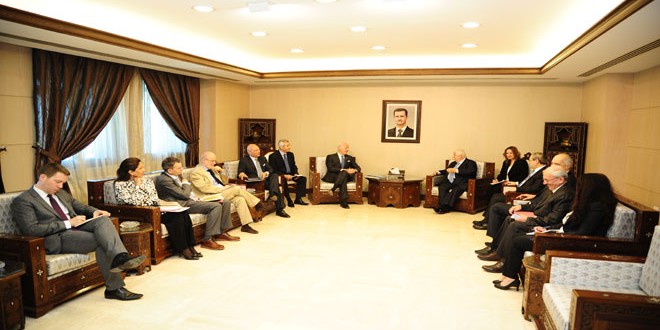 The meeting was attended by Deputy Minister of Foreign Affairs and Expatriates Faysal al-Mikdad, Syria’s Permanent Representative at the United Nations Bashar Al-Jaafari and al-Moallem’s Advisor Ahmad Arnous.
