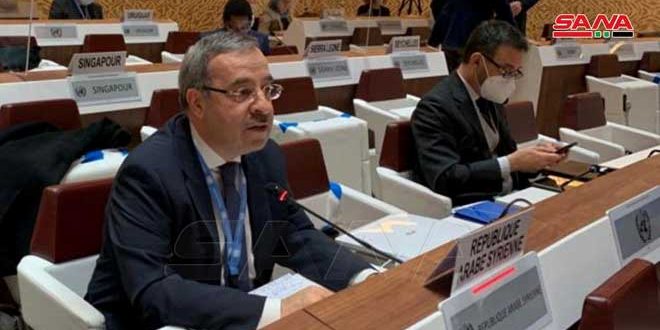 GENEVA, March.3, (ST)-Syria’s permanent representative to the United Nations in Geneva, Ambassador Hussam Al-Din Alaa, said that sending missiles and lethal weapons by the west to Ukraine and imposing unilateral coercive measures against Russia aim to escalate the crisis and exert pressure on Russia.
