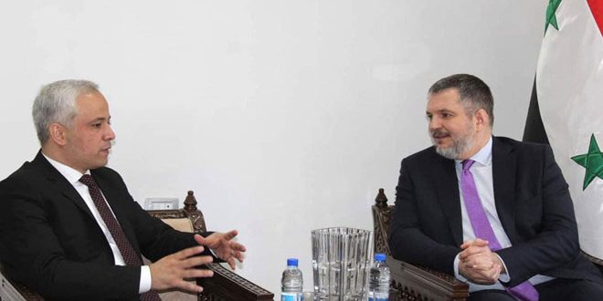 DAMASCUS, DEC.15, (ST)-The Minister of Telecommunication and Technology Iyad Al-Khatib and the Serbian Assistant Minister of Foreign Affairs Vladimir Marić discussed on Wednesday the ways of exchanging experiences in the fields of IT and digital transformation.