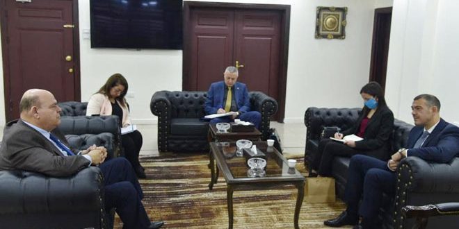 DAMASCUS, Feb.10, (ST)- The Minister of Internal Trade and Consumer Protection Amro Salem discussed on Thursday with the Ambassador of the Republic of Serbia in Damascus Radovan Stojanovic the ways of enhancing bilateral cooperation in trade and investment sectors.
