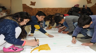 Sun, which represents Syria’s civilization, plus Palmyra, Omayyad Mosque, Bosra auditorium and Hosen citadel were drawn by most of the children, who came from schools and temporary shelters to take part in the activity.