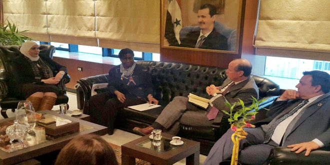 Minister of Labour and Social Affairs Rema Qadri and Deputy Executive Director of United Nations Population Fund (UNFPA) Dr. Natalia Kanem discussed Monday ways of developing cooperation in the field of taking care of children and women affected by ongoing crisis in Syria.