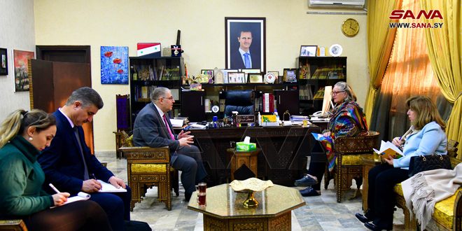 Damascus, (ST) –  Minister of Education, Dr. Darem Tabaa and Representative of the United Nations Children’s Fund (UNICEF) in Syria Angela Kearney on Wednesday discussed ways to boost educational cooperation.