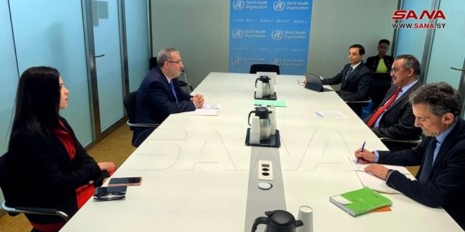 He noted the support provided by the WHO to Syria, mainly for confronting COVID-19 pandemic, reiterating the importance of consolidating international cooperation to support the health sector and early recovery program in Syria.