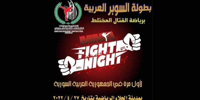 Syria will host the Arab Super Championship for mixed material arts in Al-Jalaa Sports Hall in Damascus on the 27th of this month, with the participation of 12 Arab players.