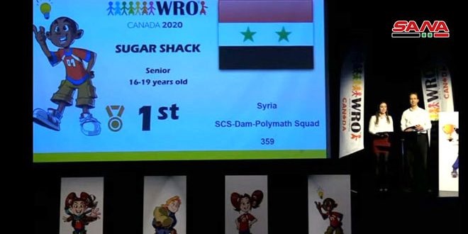 Syria won the first place in the World Robot Olympiad (WRO) in the surprise challenge competition for the higher category. The event was organized by Canada via internet on November 12 – 15 with the participation of 40 countries.