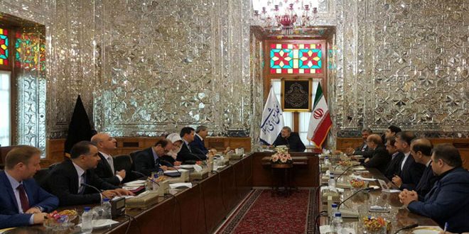 TEHRAN, (ST)-Speaker of the Iranian Shura Council (parliament) Ali Larijani on Monday received Syria’s Deputy Minister of Foreign Affairs and Expatriates Faysal al-Mikdad and affirmed to him Iran’s firm political, economic and military support for Syria as to uproot terrorism from the country.
