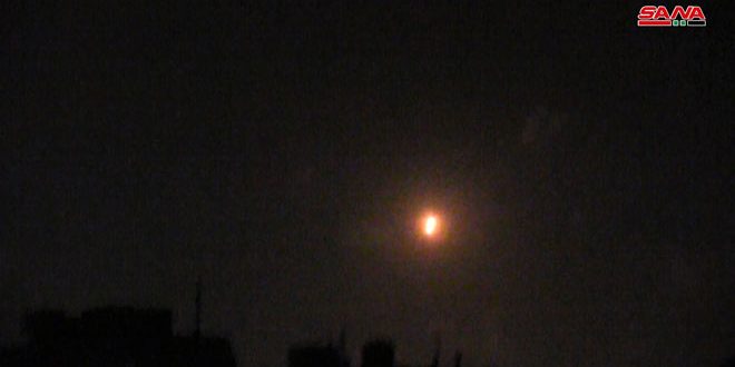 HOMS, (SANA)_Syrian Air Defenses confronted Israeli missile attack on Al-Qsir area in Homs countryside.