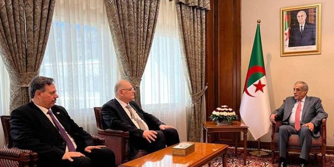Algerian Prime Minister Nadir Larbaoui discussed with the Syrian ambassador to Algeria Maher Annan Baddour during a meeting at the government palace in the Algerian capital, ways to develop and strengthen the bilateral relations in various fields between the two brotherly countries.