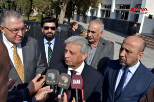 During their meeting with the Governor of Homs, Engineer Namir Makhlouf, the two ministers reviewed the agricultural, industrial, economic and educational sides of the province. The Pakistani Minister of Education confirmed that this is his first visit to Syria, and that the Pakistani people and government love the people and government of Syria.