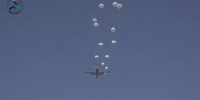The exercises came following several joint drills between the two friendly armies with the aim of training and enhancing the skills of the Syrian fighters in military parachuting with high professionalism and within different circumstances.