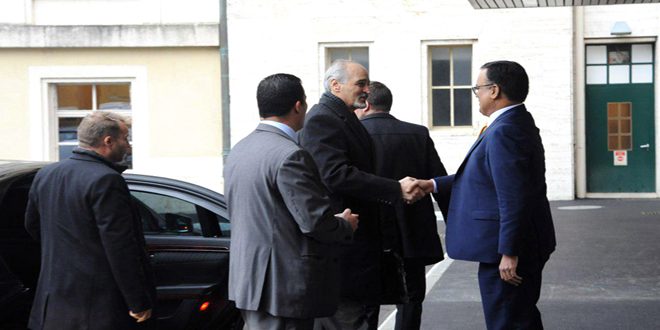 GENEVA, (ST)- The Syrian Arab Republic delegation led by Syria’s Permanent Representative to the United Nations Bashar al-Jaafari on Thursday held talks with UN Special Envoy for Syria Staffan de Mistura at the UN headquarters within the framework of the 8th round of Intra-Syrian talks in Geneva.