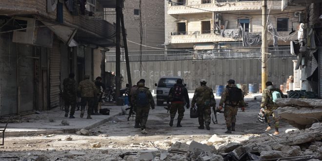 Army units, in cooperation with the supporting forces, also restored security and stability to the neighborhoods of al-Firdous and Karm al-Da’da’ in the southeastern part of Aleppo City, according to the reporter .