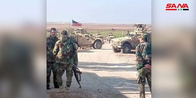 A Syrian Arab Army checkpoint on Saturday intercepted a convoy of five military vehicles that belong to the US occupation in Tal Tamer town in Hasakah northwestern countryside. The army forces at the checkpoint prevented the vehicles from crossing through the village of Mansaf Tahtani in Tal Tamer countryside and forced them to return from where they come, SANA reporter in Hasakah said.