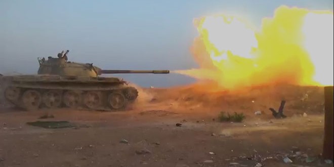 “A training camp for al-Nusra Front was completely destroyed and scores of terrorists were killed in Anb town in Idleb countryside,” sources said, pointing out that 4 vehicles for the ‘Jaish al-Fateh’ terrorists were destroyed in al-Ghab plain in Hama countryside.