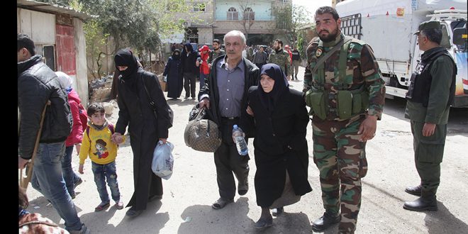 DAMASCUS COUNTRYSIDE – Army units on Friday secured the evacuation of thousands of civilians besieged by the terrorist organizations in the northern part of Eastern Ghouta through the safe corridor at al-Wafideen Camp, according to SANA.