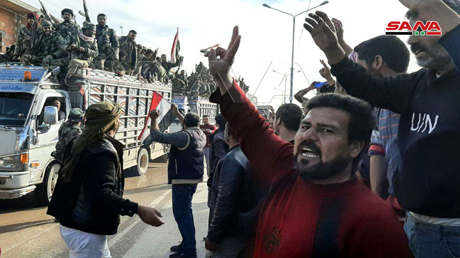 HASAKA, (ST)_A convoy containing tanks, armored cars and vehicles loaded with military and logistic equipment arrived in Tal Tamer town and immediately moved towards military positions in Em Harmaleh town to the northeast of Abo Rasin town and in the border towns in the northeastern countryside of Hasaka to reinforce these positions.