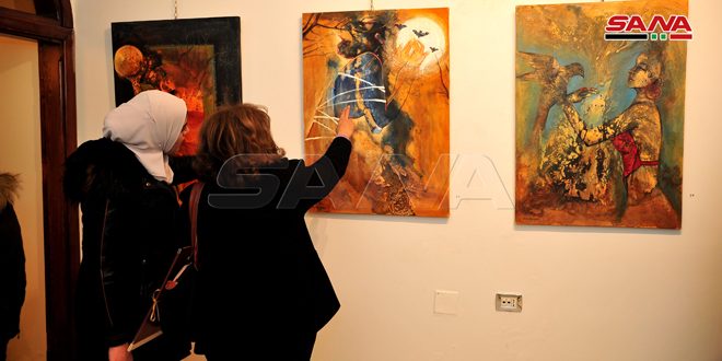 Damascus, (ST) – Syrian fine artist Vivian Al- Sayegh‘s painting exhibition currently held at the Mishwar art gallery in Damascus depicts the impacts and repercussions of the terrorist war on Syria.