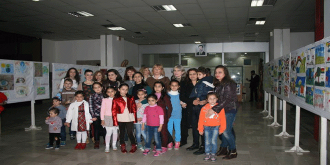 The paintings show children’s vision for Syria’s peace and future, the Syrian Arab News Agency (SANA) reported Monday, adding that Public Children Library in cooperation with the Russian ‘Dar’ Group for Culture organized the three-day exhibition.