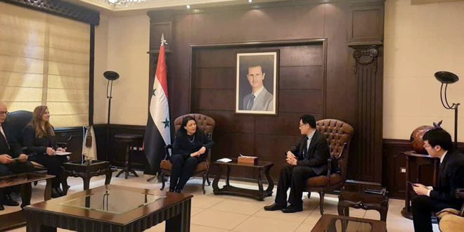 Damascus (ST) – The Minister of Local Administration and Environment Lamia Shakour discussed with the Chinese Ambassador to Syria Shi Hongwei ways to enhance cooperation in the areas of developing the capabilities of administrative units, the environment, the internal transportation system, and fire brigades.