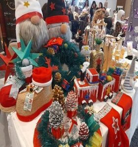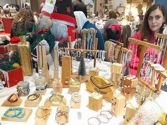 The bazaar includes traditional embroideries, soap, accessories, food products, clothes, home decorations, perfumes, sweets , and Christmas decorations.