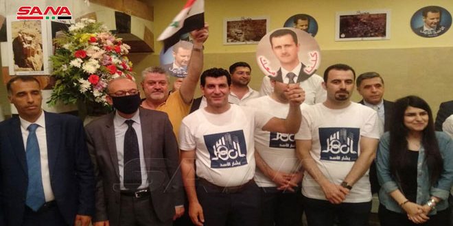 The participants in the celebration reiterated their support to their country and their leadership in rebuilding Syria and raising its flag in all international forums. They expressed their joy at the victory that was embodied in the electoral achievement and the victory of President al-Assad.