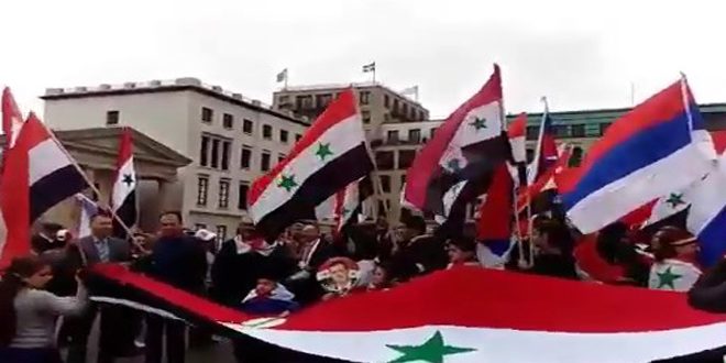 Berlin – Representatives of the Syrian communities in a number of European states organized a sit-in in front of the US Embassy in the German capital of Berlin condemning the US act of aggression on a position of the Syrian Arab Army in Deir Ezzor province, SANA reported.