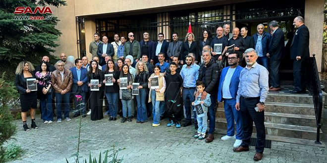 Sofia (ST): The Syrian Embassy in Sofia and the Bulgarian branch of the National Union of Syrian Students organized a stand of mourning for the souls of the martyrs of the terrorist attack that targeted the graduation ceremony of student officers of the Military College in Homs last Thursday.