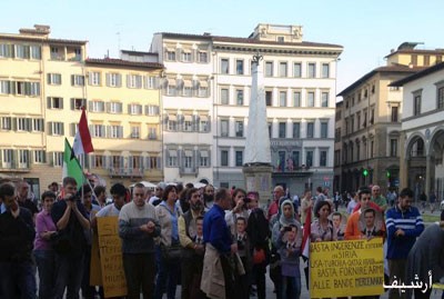 ROME, (ST) – The Syrian Community and students in Italy organized a rally in Rome in solidarity with their homeland and with the Palestinian people. Hilarion Capucci, the Archbishop of Jerusalem in Exile, participated in the rally.